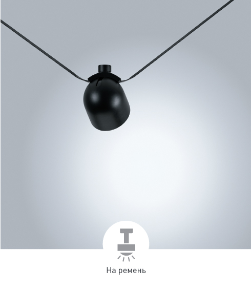 Светильники монтируются на токопроводящие ремни без использования дополнительного инструмента.
