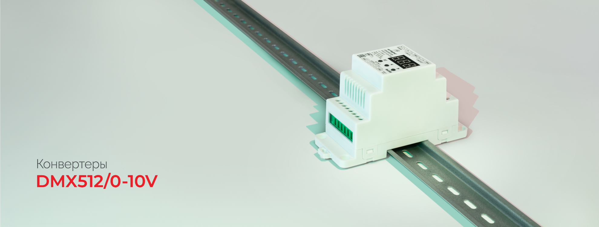 Удобство настройки Выбор типа выходного сигнала (0–10 В или 1–10 В), кривой диммирования (линейной или логарифмической), режима DMX-адресации (DIM, MIX или RGB/RGBW) производится с помощью кнопок прямо на корпусе.