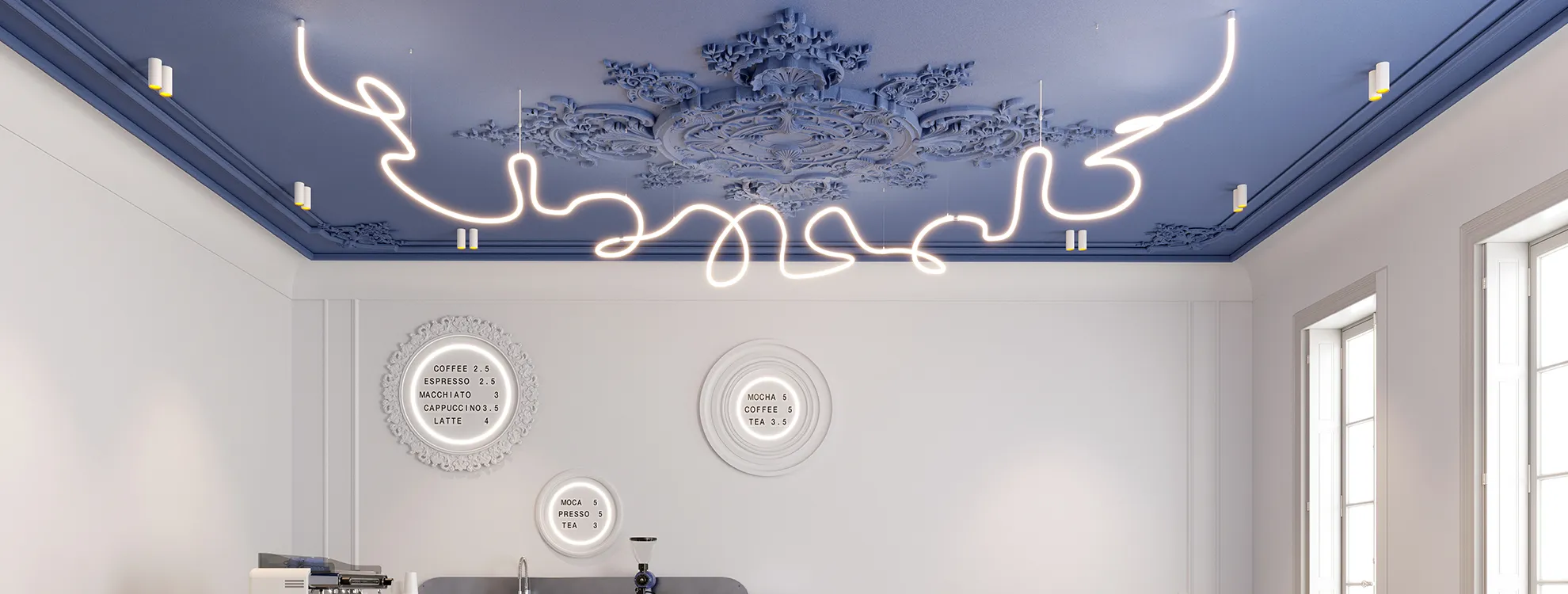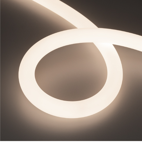 Гибкий неон MOONLIGHT с диаметром 25 мм имеет стальную пластину внутри, благодаря которой сохраняет форму изгиба без дополнительных креплений. Равномерное свечение неона направлено на 360°. С помощью MOONLIGHT D25 FP возможно создать локальное и основное освещение, а также оригинальные арт-объекты. 3D-инсталляции на основе круглого гибкого неона гармонично впишутся в гостиные, кухни, детские комнаты и коммерческие пространства.