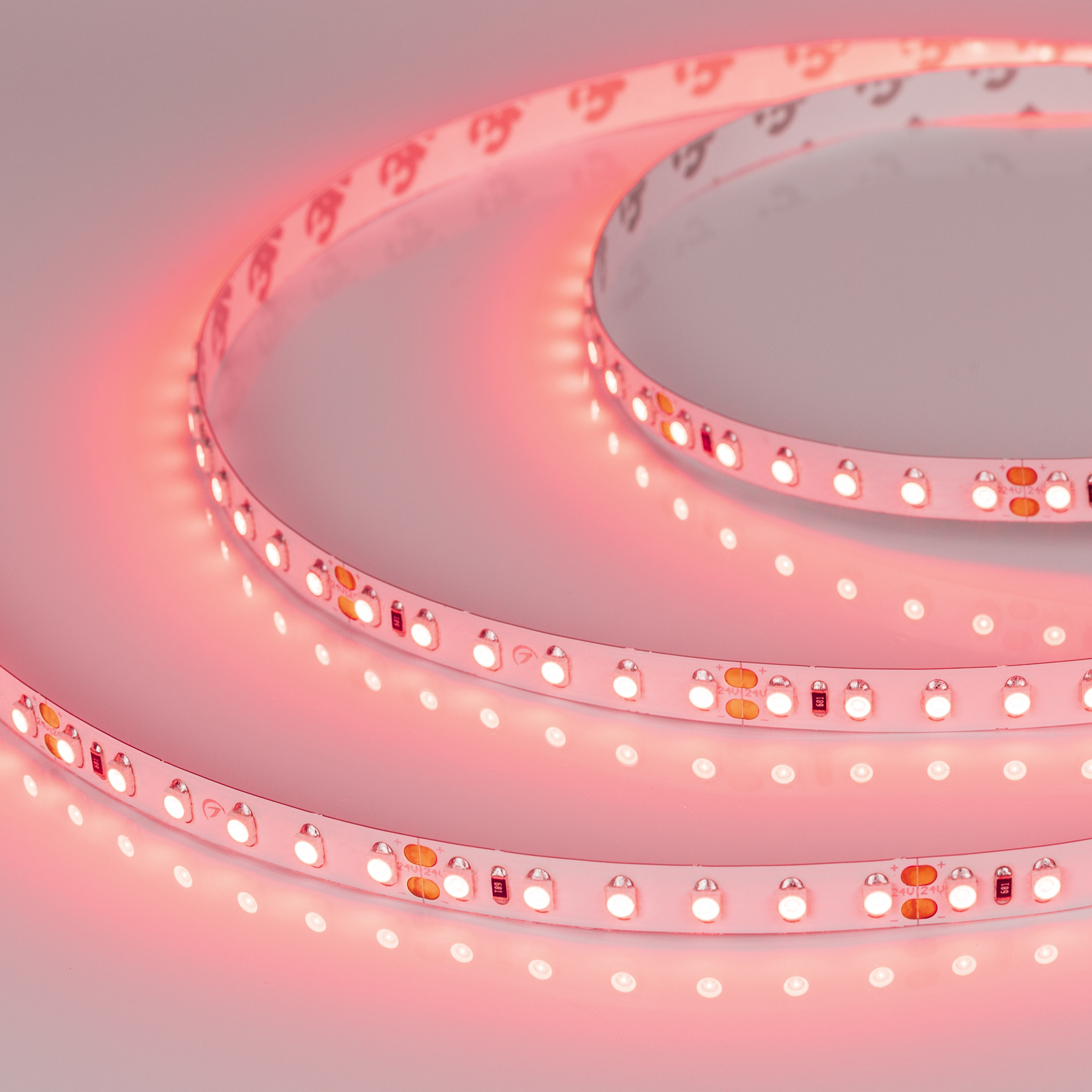 Светодиодная лента серии LUX шириной 8 мм. Питание 24 В и мощность 9.6 Вт/м. Светодиоды 2x SMD 3528 красного цвета свечения с плотностью расстановки 120 шт/м. Степень пылевлагозащиты IP20.