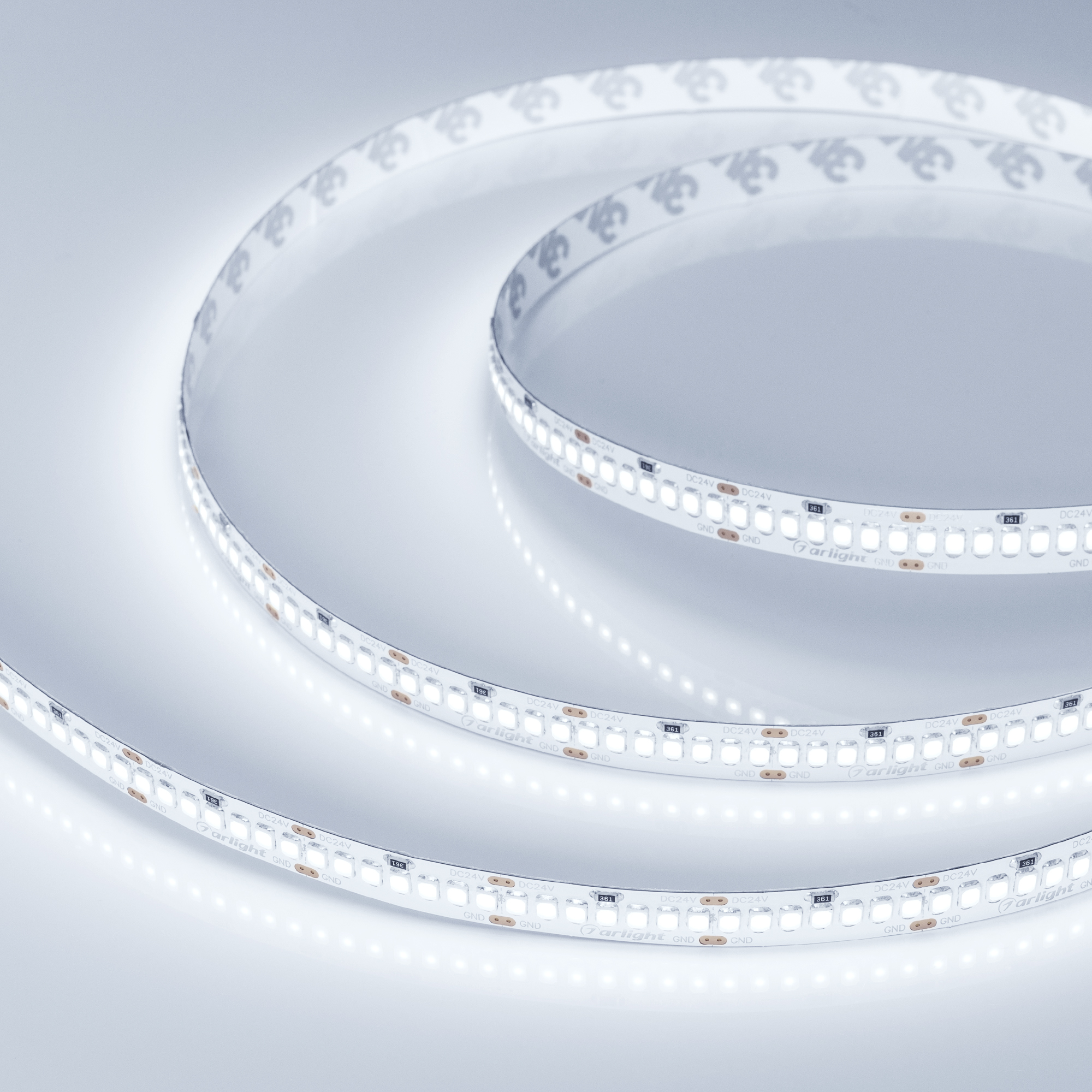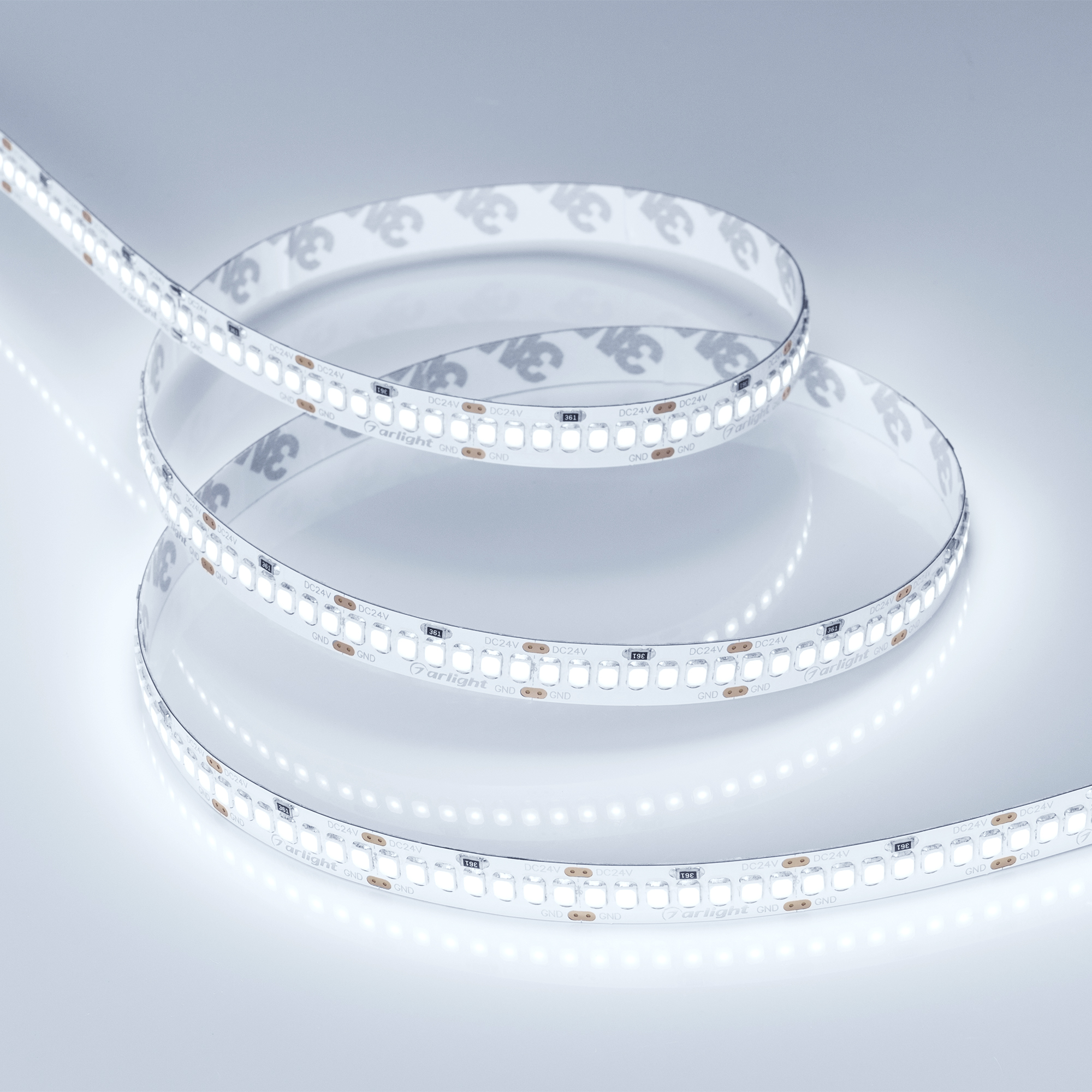 Светодиодная лента RT 2-5000 24V Cool 8K 10mm (2835, 252 LED/m, LUX) (Arlight, 10 Вт/м, IP20)