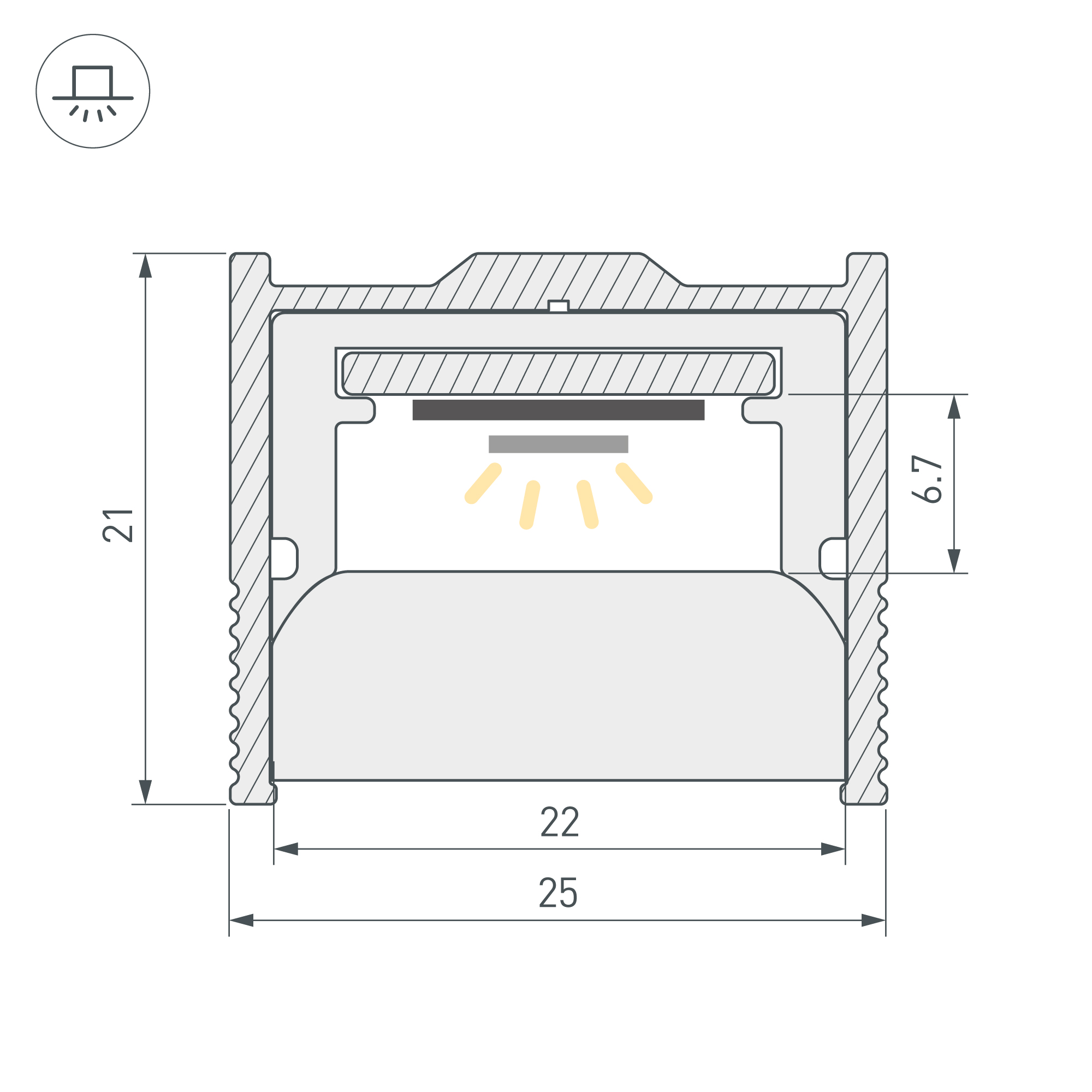 Алюминиевый профиль-держатель для установки профиля WPH-FLOOR22-2000 в пол. Габаритные размеры профиля составляют 2000 мм в длину, 24,7 мм в ширину и 20,9 мм в высоту. При соблюдении технологии герметизации этот профиль позволяет создать водонепроницаемые напольные конструкции в помещениях, кратковременно подвергающихся воздействию воды.