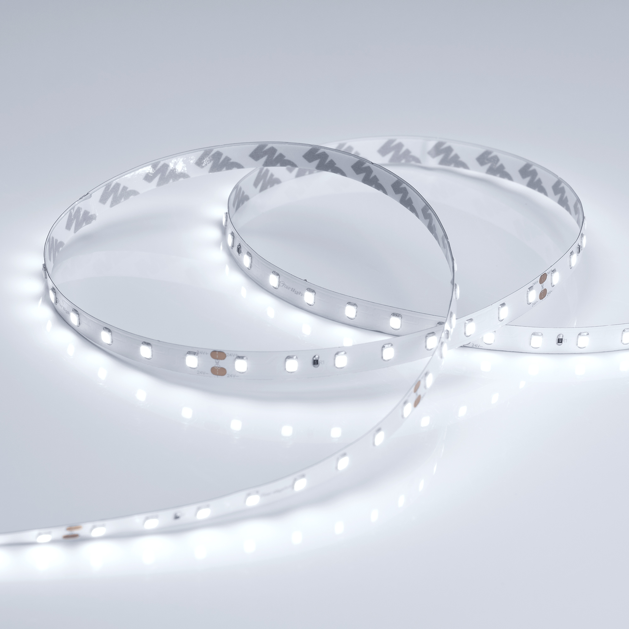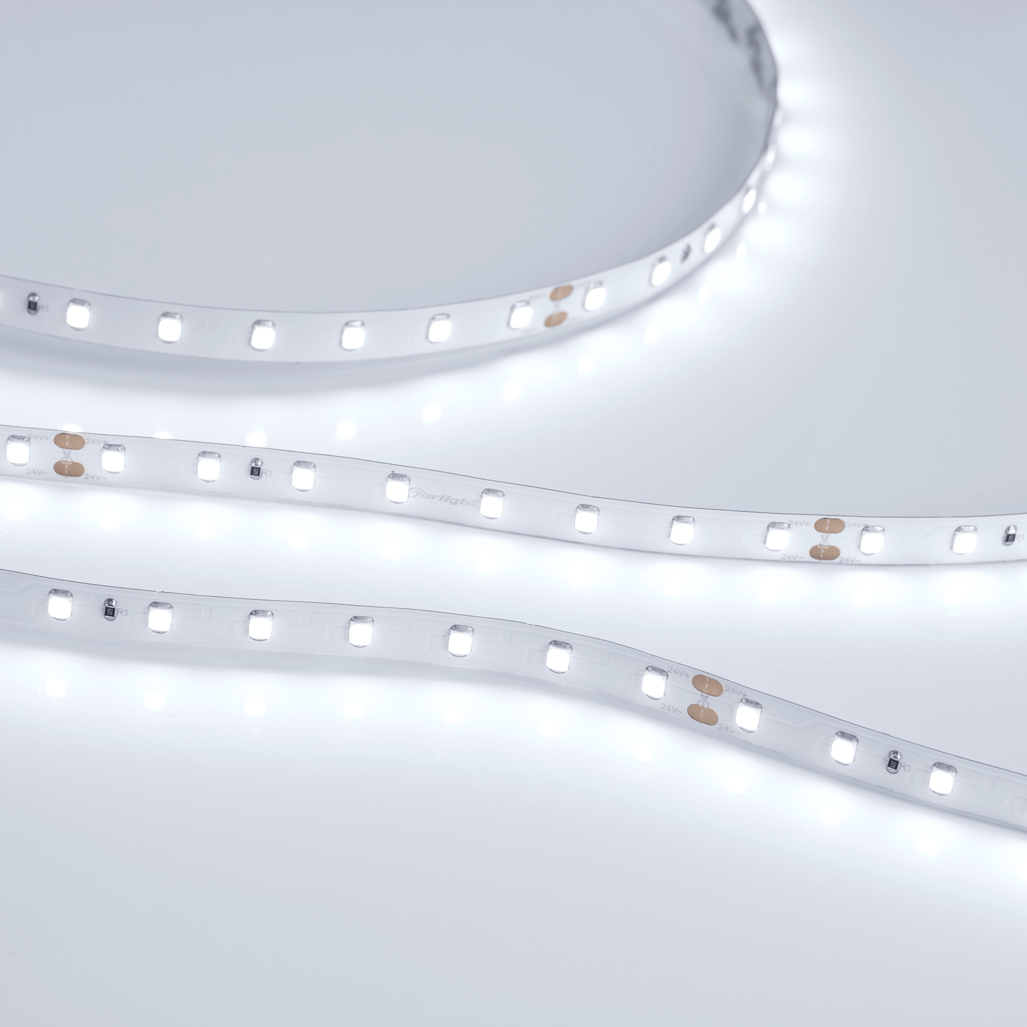 Открытая светодиодная лента шириной 8 мм и мощностью 6 Вт/м с индексом цветопередачи CRI>85. Светодиоды SMD 2835 (80 шт/м) белого цвета свечения (5800–6500 К). Напряжение питания 24 В. Минимальный отрезок 100 мм (8 светодиодов). Высокая световая эффективность 150 лм/Вт позволяет создать качественное освещение в любых помещениях. Лента применяется для декоративной подсветки интерьеров, потолочных ниш, рабочих зон кухни, мебели, а также подходит для подсветки рекламных конструкций и витрин.