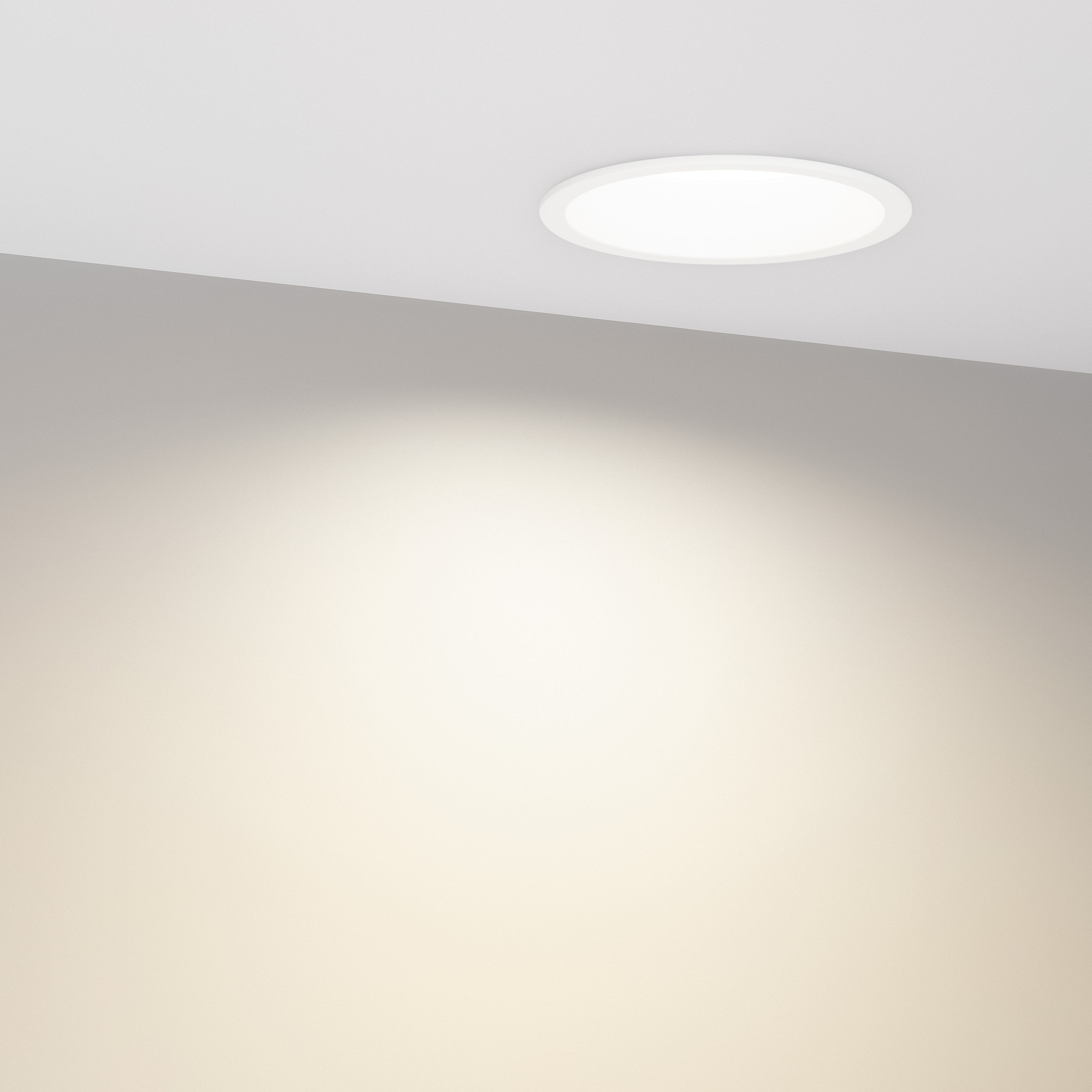 Встраиваемый круглый светильник с индексом цветопередачи CRI>90 и низкой пульсацией обеспечивает равномерное освещение без мерцания и видимости точек светодиодов с точной передачей цветовых оттенков. Алюминиевый корпус белого цвета с утопленным светодиодным модулем является интересным дизайнерским решением, создавая эффект света из ниоткуда и делая освещение комфортным для глаз. Особая конфигурация корпуса позволяет эффективно отводить тепло и продлевает срок службы светодиодов. Светильник с широким углом излучения 90 градусов и световой эффективностью 70 лм/Вт подходит для качественного основного освещения. Легко устанавливается с помощью пружин в монтажное отверстие. Драйвер поставляется в комплекте и позволяет быстро подключать светильник напрямую к сети переменного тока 230 В. Диммирование возможно при замене штатного драйвера. Степень защиты от пыли IP20 позволяет применять модель в жилых, коммерческих, торговых и других помещениях, где отсутствует контакт с водой.