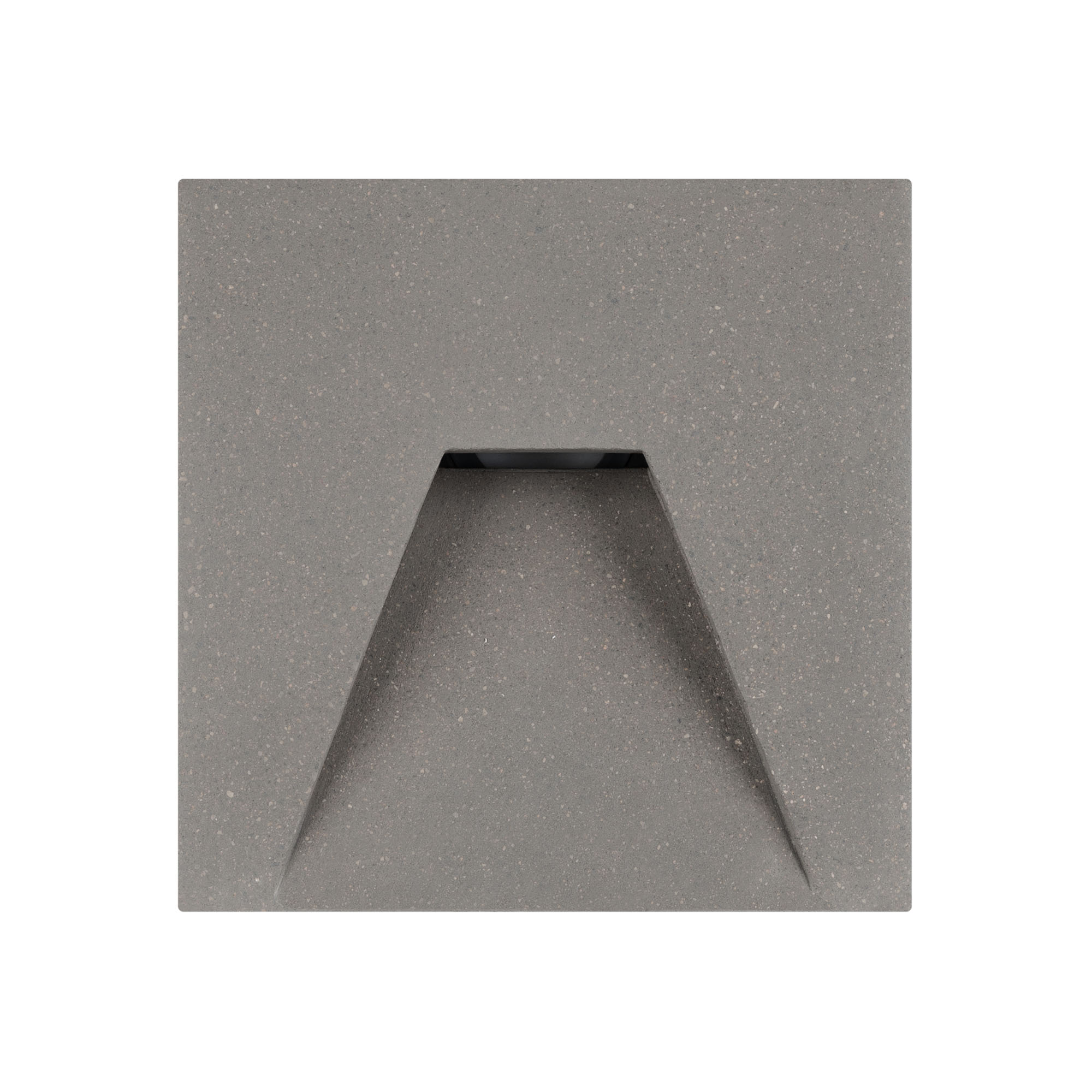 Светодиодный встраиваемый квадратный светильник для стен, лестниц. Мощность 3Вт, световой поток 80 лм, теплый 3000К, угол 75x30°, CRI>80, напряжение 230 В. Квадратный корпус из бетона серого цвета и алюминия. Степень защиты IP65. Питание AC230V, мощность 3Вт. Размеры LхWхH 100х100x76 мм. Драйвер встроенный, пульсация <0.5%.