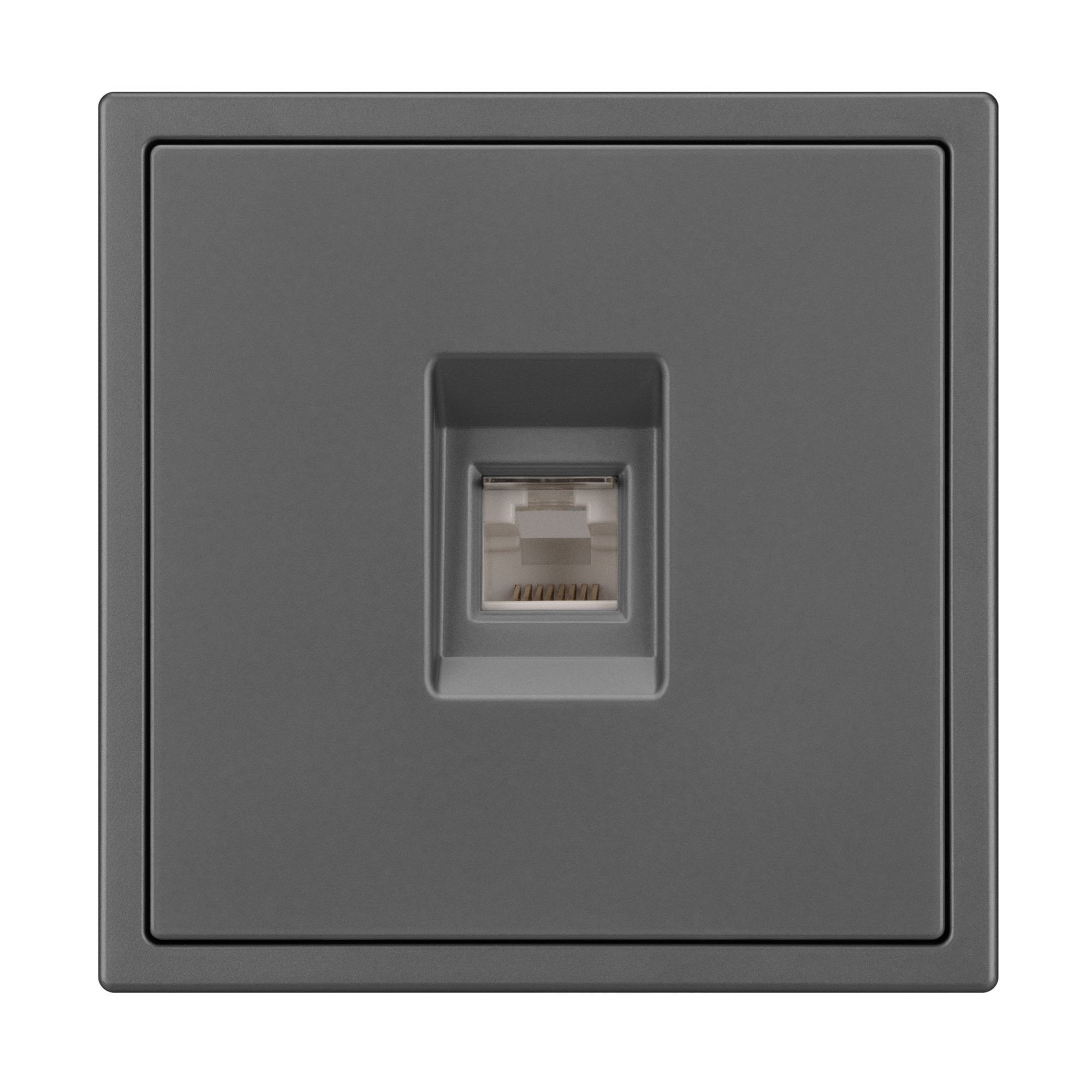 Механизм телефонной розетки. Цвет - серый базальт, с Soft-Touch покрытием. Без фронтальной рамки. Уровень пылевлагозащиты IP20. Тип подключаемого разъема - RJ11. Розетка устанавливается в стандартный подрозетник круглого сечения диаметром 60мм. Габаритные размеры: длина 71 мм, ширина 71 мм, высота 42 мм. Гарантийный срок 10 лет.