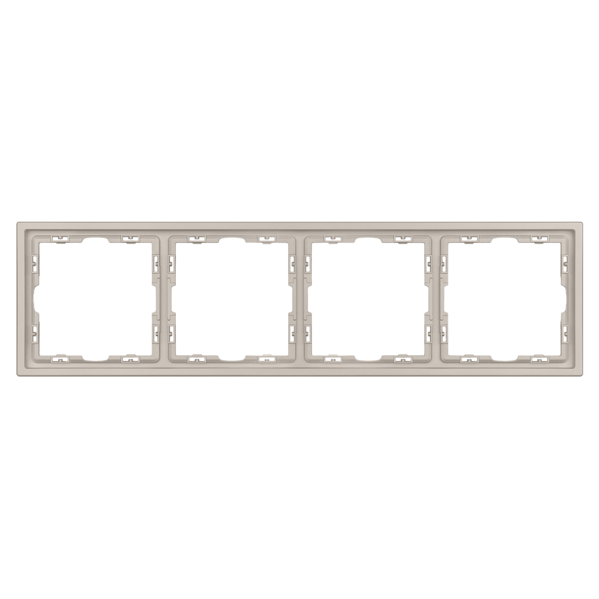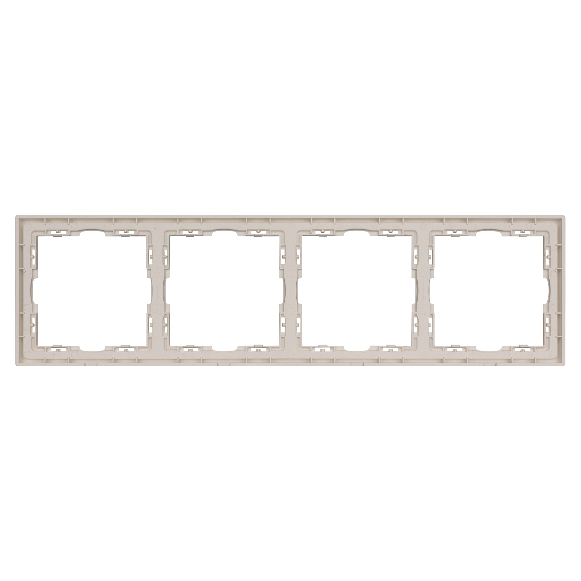 Рамка пластиковая на 4 поста, под встраиваемый механизм. Цвет - кашемир, с Soft-Touch поверхностью. Среднего уровня герметичности IP20. Ориентация монтажа горизонтальная. Габаритные размеры: длина 294 мм, ширина 81 мм, высота 8.55 мм. Гарантийный срок 12 мес.
