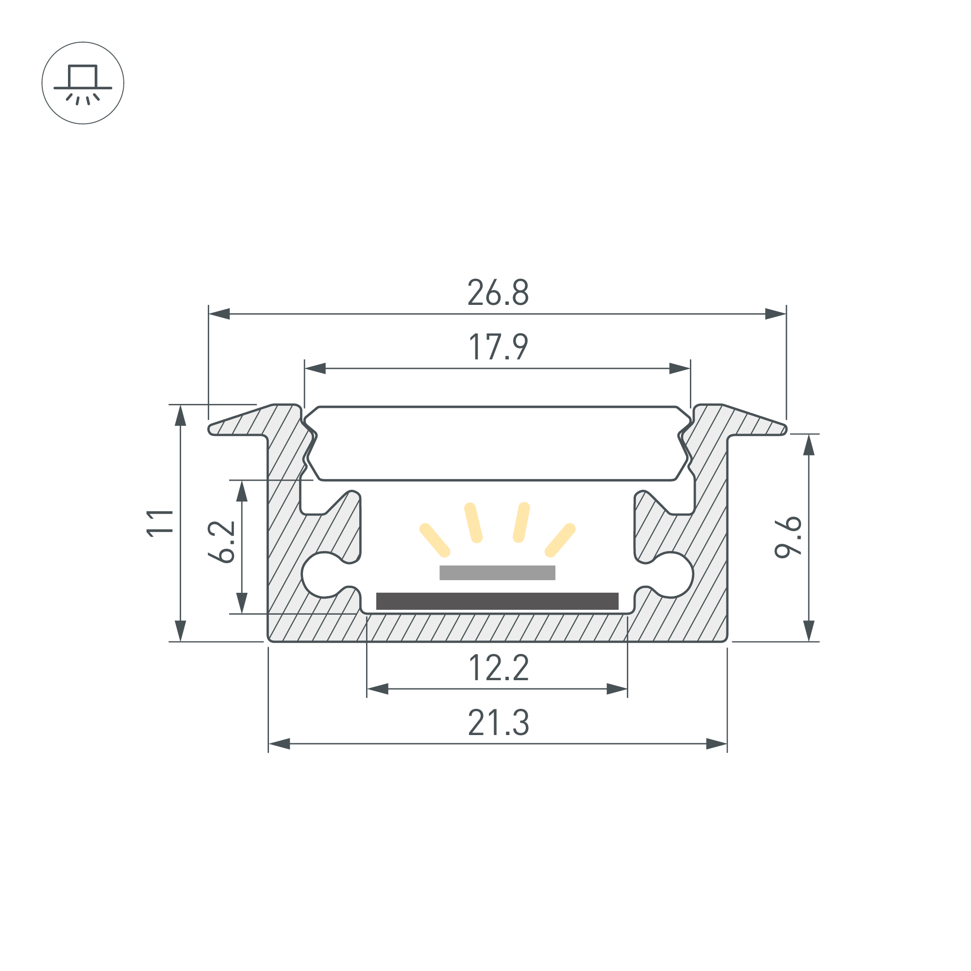 Встраиваемый профиль с фланцем из анодированного алюминия для установки в пол позволяет закрыть возможные неровности паза. Может использоваться внутри помещений (степень защиты от механических повреждений IK10). Класс пылевлагозащиты – IP65 (при соблюдении технологии герметизации, использовании уплотнительных резинок и заглушек). Габаритные размеры профиля составляют 2000 мм в длину, 26,8 мм в ширину и 11 мм в высоту. Площадка для установки светодиодных лент позволяет использовать ленту шириной до 12,2 мм, высотой до 6 мм и мощностью до 18,4 Вт/м. Это обеспечивает гибкость в выборе светодиодных лент и создает потрясающие световые решения. Экран, уплотнительные резинки, заглушки и другие аксессуары не включены в комплект и приобретаются отдельно. Цена указана за 1 метр профиля. Отличное решение для создания современных световых проектов.