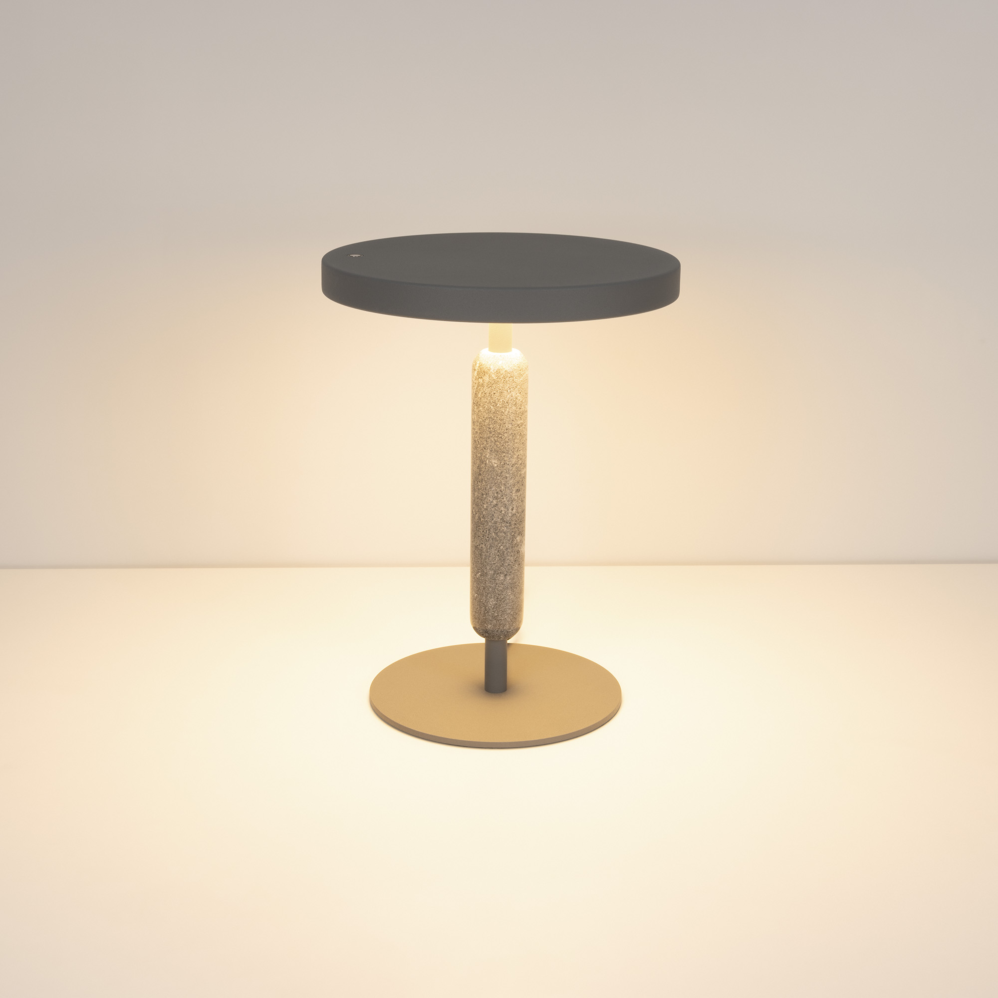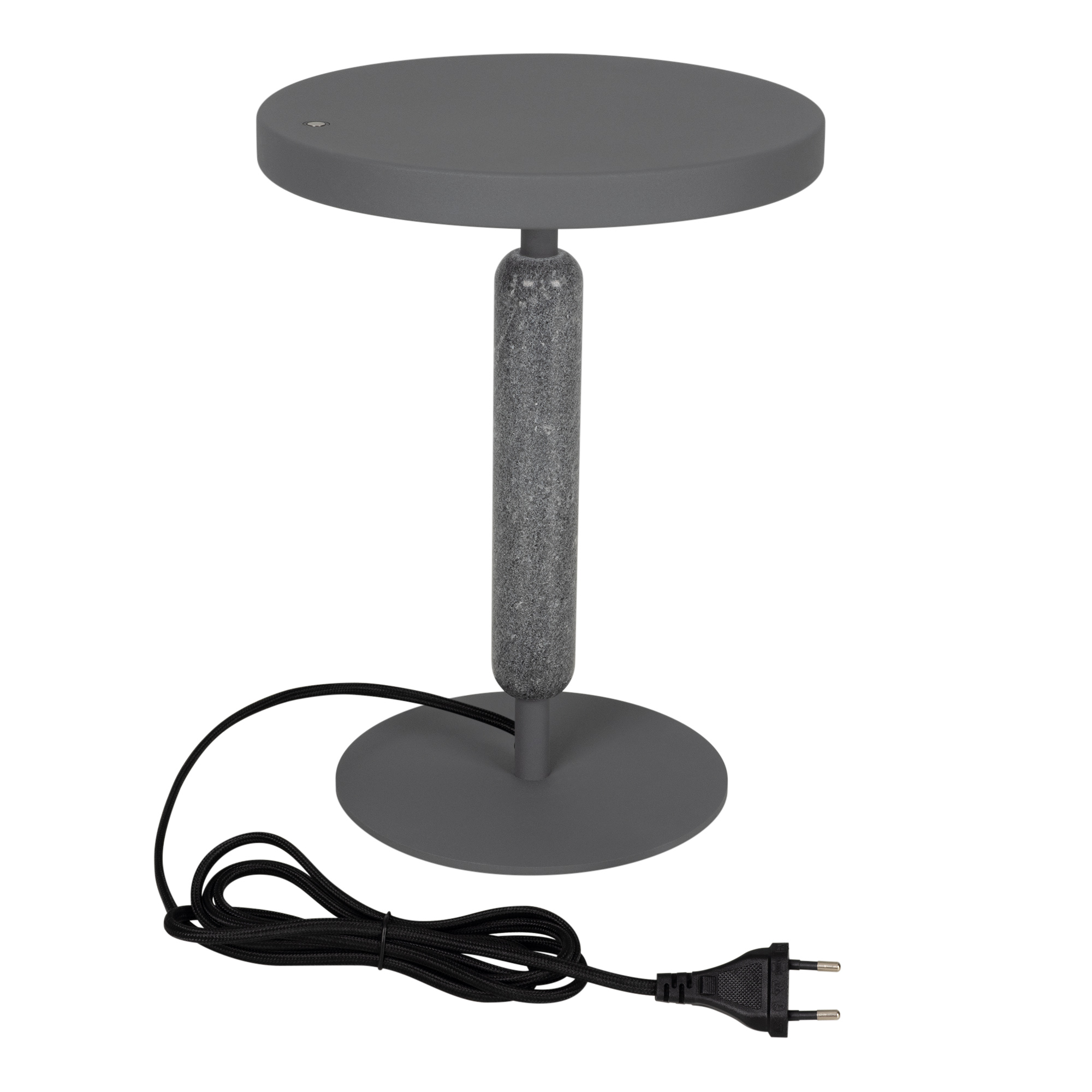 Настольный светильник ALYSS. С изменяемой цветовой температурой 2700/3200/4000К. Цт переключается коротким нажатием на сенсорную кнопку на плафоне, диммирование происходит за счет ее удержания. Мощность 5 Вт, св. поток 195 лм, 39 лм/Вт, CRI>92, угол 110°, напряжение питания 230 В. Темно-серый корпус из алюминия, декоративная вставка из мрамора, степень защиты IP20. Размер: диаметр 225 мм, высота 300 мм. Пульсация <1%.