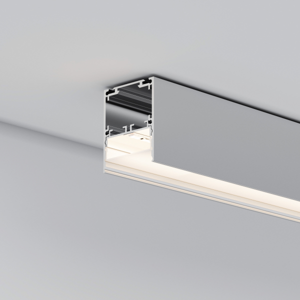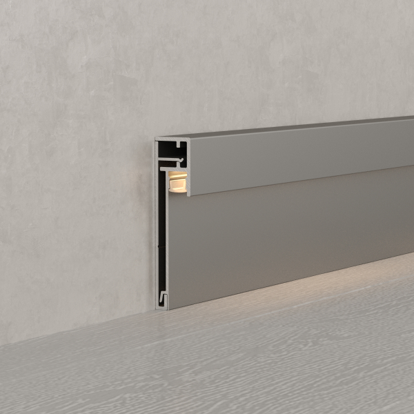 Среди новинок — накладные двухкомпонентные профили-плинтусы, а также встраиваемые модели с накладным фланцем. Различные варианты расположения площадки для ленты позволяют подобрать подходящий световой эффект.