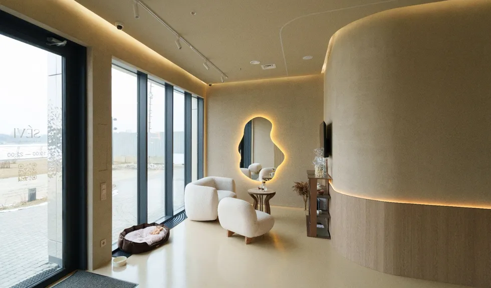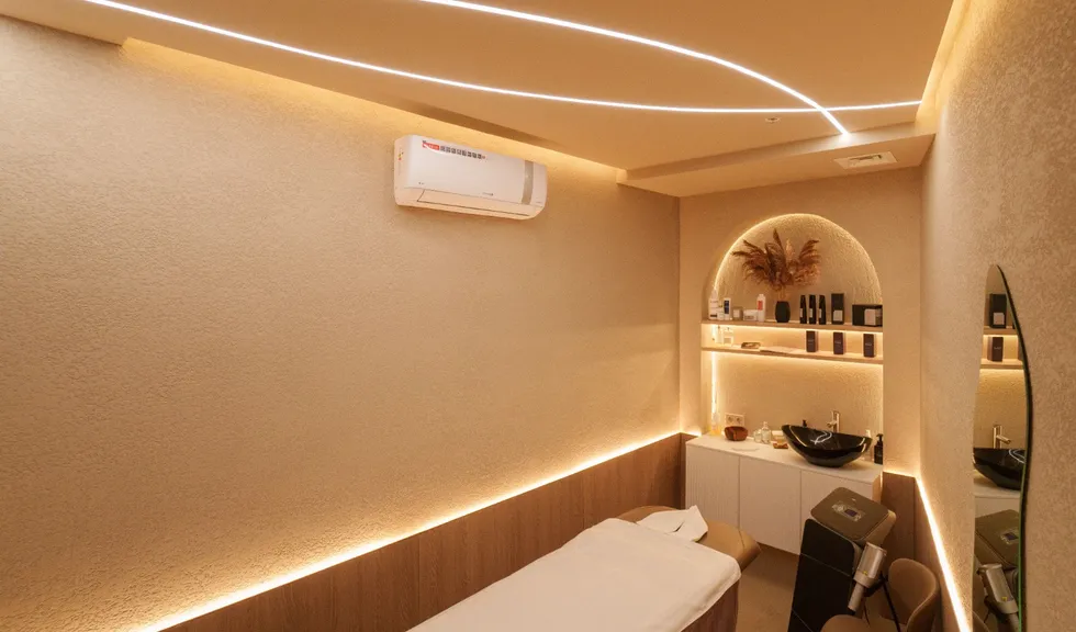 Освещение в салоне должно быть достаточно ярким для работы, но при этом мягким, чтобы не утомлять глаза. Добиться такого баланса позволяет сочетание: