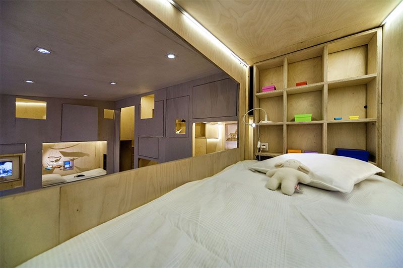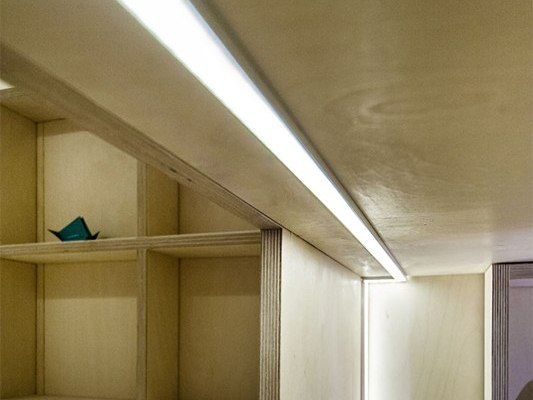 Все формы созданного дизайнерами лабиринта подсветили светодиодной подсветкой. Для этого использовалась светодиодная лента arlight®, установленная в алюминиевый профиль. Для защиты от пыли и возможных повреждений светодиодная лента закрыта экраном, который также служит для рассеивания света. Теперь найти дорогу или забытую игрушку среди разнообразных переходов, лестниц и потайных шкафчиков не составит никакого труда.
