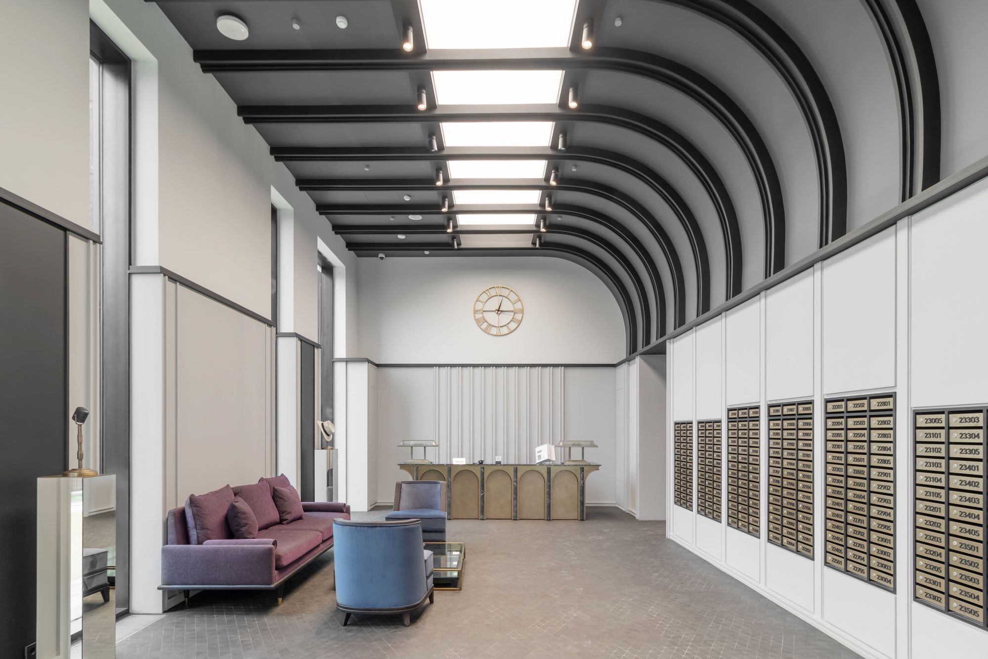 Пространство лобби не только выдержано в стиле ар-деко: жители могут почувствовать себя героями фильмов «золотого века» Голливуда — блистательными и неординарными. На стенах развешаны портреты таких легендарных голливудских актеров, как Мэрилин Монро и Чарли Чаплин, а зеркала — словно из гримерки.