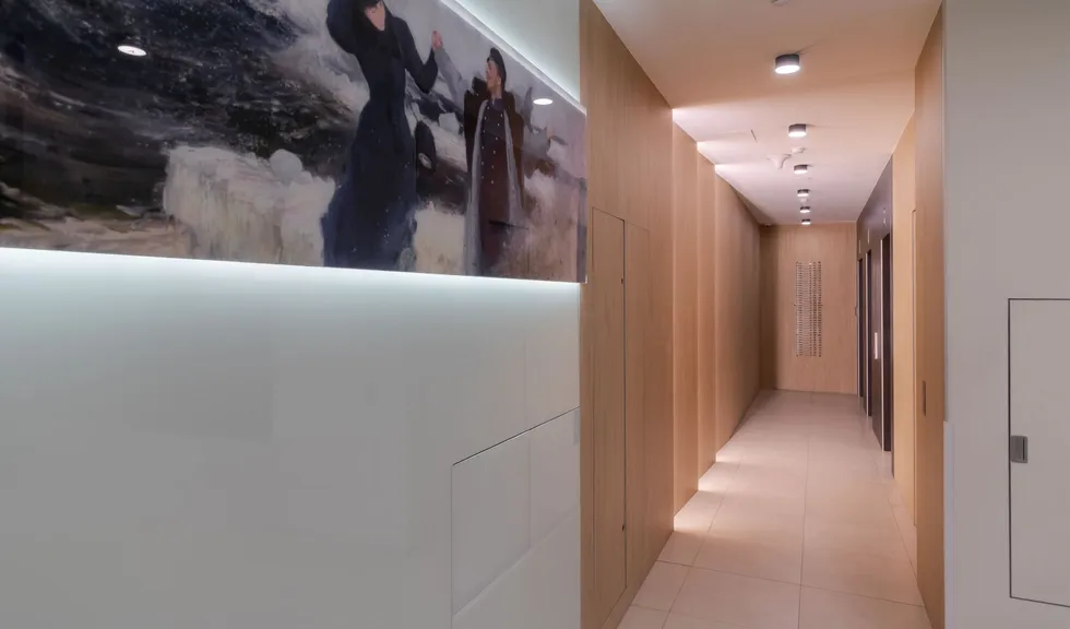 Особый шарм в лобби создается за счет закарнизной подсветки. С помощью накладного профиля SL и светодиодной ленты RT с дневным цветом свечения был сделан акцент на зоне почтовых ящиков и на декоративных элементах, а также была создана вертикальная подсветка деревянных панелей. Благодаря последнему эффекту помещение лобби кажется просторнее, а у жильцов и гостей дома создается ощущение, будто дневной свет проходит сквозь стены.
